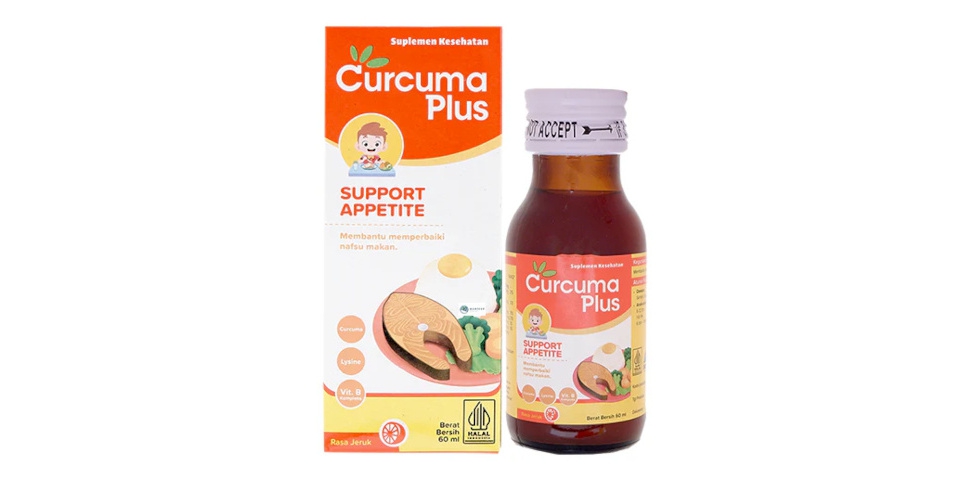 Curcuma Plus Appetite merupakan salah satu suplemen andalan banyak Moms di Indonesia. Produk ini mengandung ekstrak curcuma (temulawak) yang dipercaya dapat merangsang nafsu makan serta diperkaya vitamin B kompleks dan lysine untuk mendukung pertumbuhan anak. Rasa jeruknya disukai anak-anak dan bisa dikonsumsi mulai usia 1 tahun.