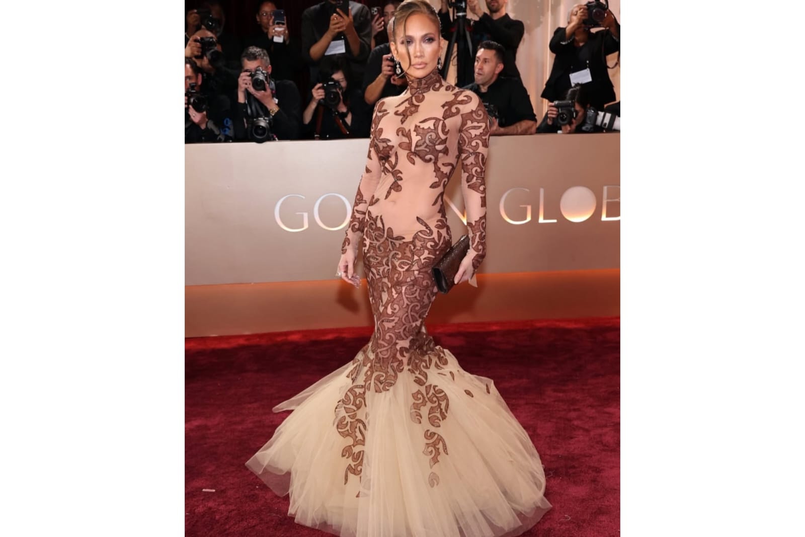 3. Di malam puncak ke-83 Golden Globes, penyanyi Jennifer Lopez tampil memukau. JLo, sapaan akrabnya, memilih mengenakan gaun vintage karya Jean Louis Scherrer Haute Couture di tahun 2003. Kesan sensual tetapi tetap elegan terpancar dari gaun berbahan dasar tulle berwarna nude dengan sentuhan cokelat serta siluet mermaid di bagian bawah gaun.