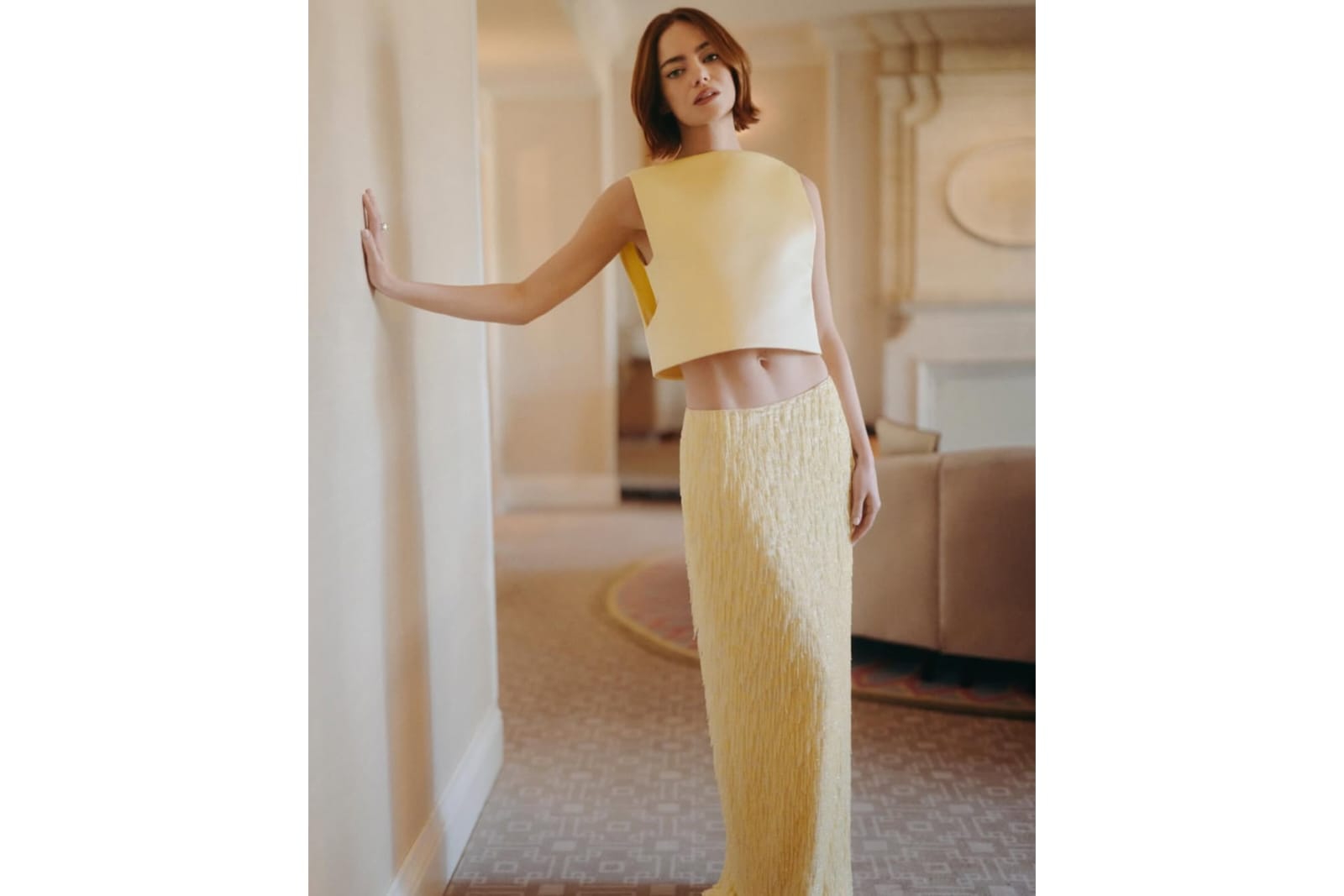 2. Sederhana tetapi tetap berhasil mencuri perhatian. Itulah yang menggambarkan penampilan Emma Stone di red carpet Golden Globes 2026. Crop top dan rok berwarna butter yellow yang dikenakan Emma diketahui merupakan rancangan Louis Vuitton. Tak hanya warna lembut dari outfit-nya, rambut bob Emma juga membuat penampilannya terlihat segar.