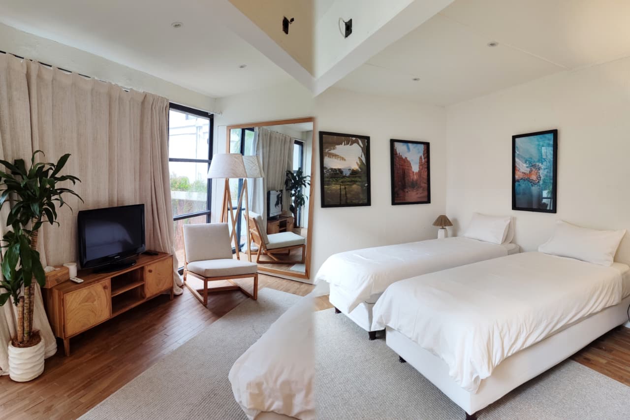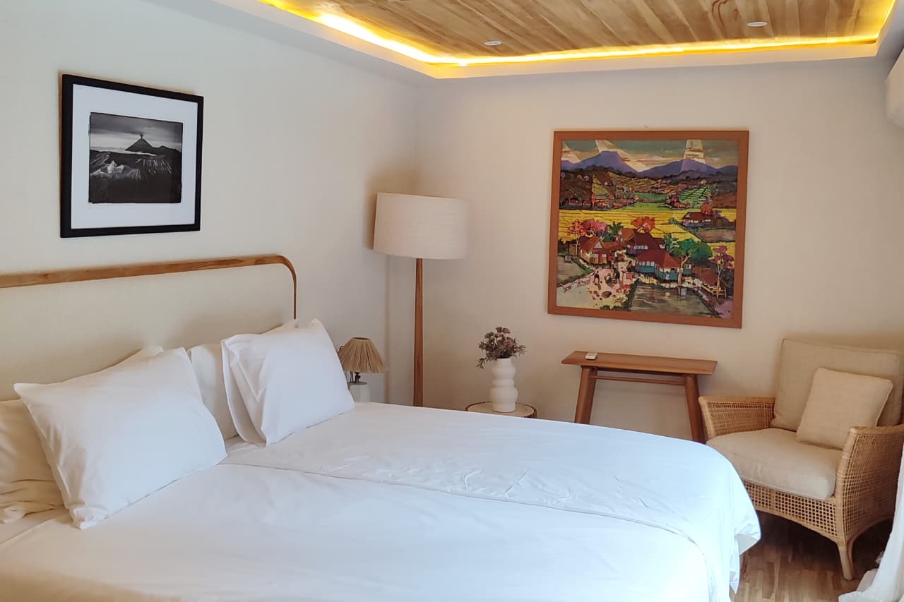 Tak hanya menawarkan keindahan dari setiap sudutnya, vila Elements Loft ini juga menghadirkan kamar tidur dengan suasana yang super nyaman dan bersih. Di sini terdapat dua tipe kamar tidur, di mana kamar tidur lantai satu menyediakan 1 king bed dengan akses kamar mandi yang berada tepat di sebelahnya, dan kamar tidur di lantai dua menyediakan 2 single beds dengan kamar mandi dalam.