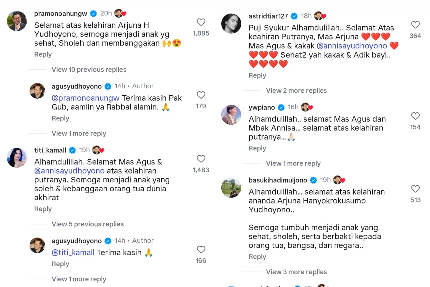 Sekali lagi selamat untuk Mom Annisa dan keluarga atas kelahiran baby Arjuna! (MB/Vonda Nabilla/RF/Foto: @annisayudhoyono, @agusyudhoyono, @machimachika, @wentizachairia/Dok. Instagram)
