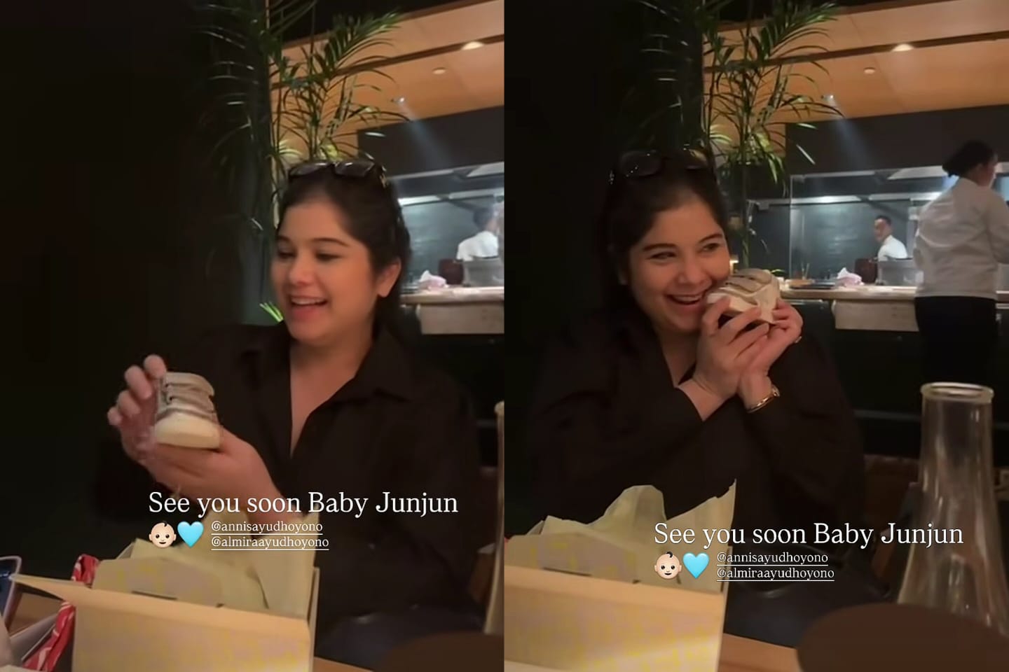 4. Annisa juga mendapat kejutan dari teman dan anak sulungnya. Dalam sebuah pertemuan makan malam, nampak ia dihadiahi sebuah kado untuk calon jagoannya ini. Saat membuka kado itu pun wanita berdarah Batak ini sungguh senang seakan merasa gemas dengan sepatu mini yang ia dapat untuk AHY junior.